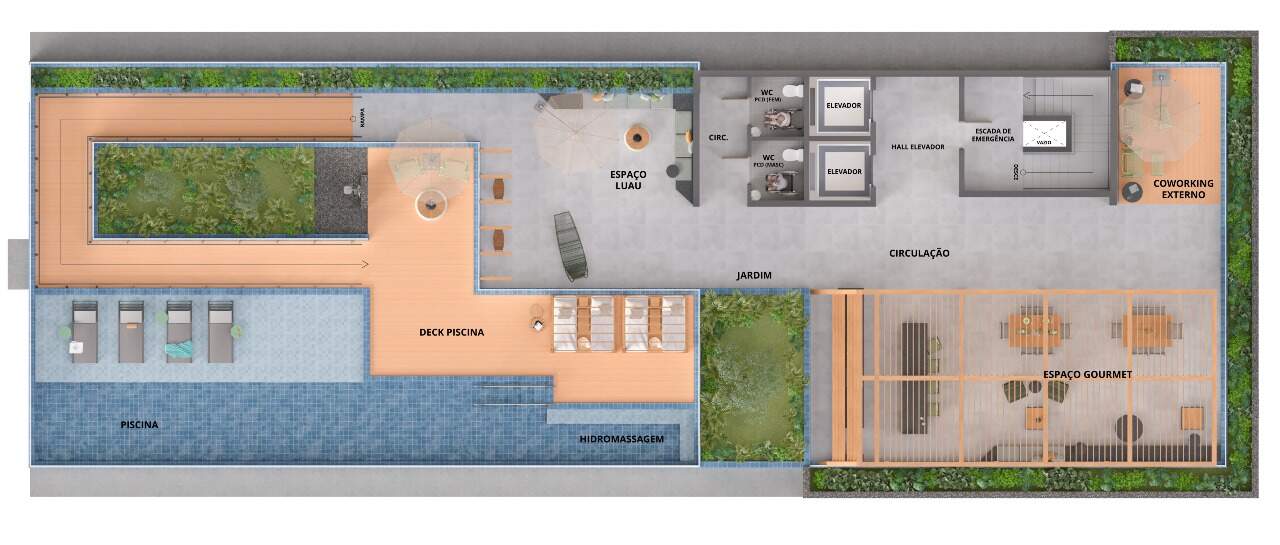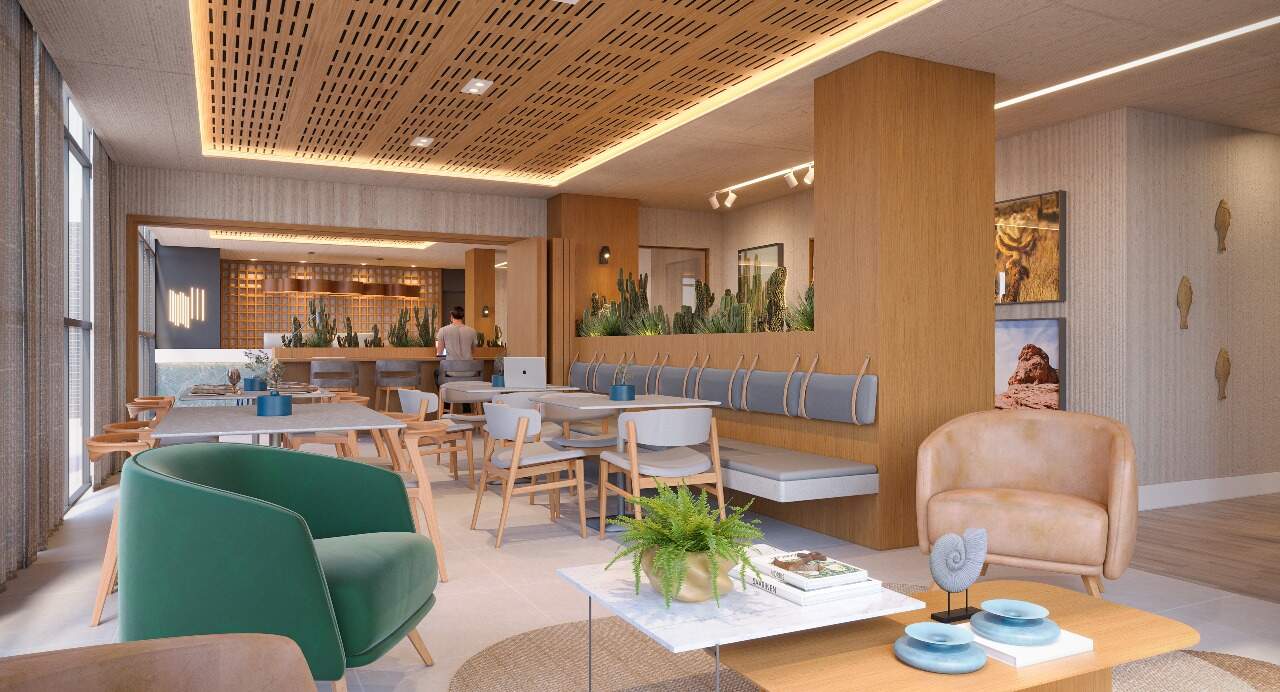 O Rio 83 é o empreendimento de studios com uma arquitetura pensada para a tranquilidade desde sua entrada, tendo um lago com carpas, até seu espaço de coworking externo. Com 2 elevadores, sua área de lazer conta também: