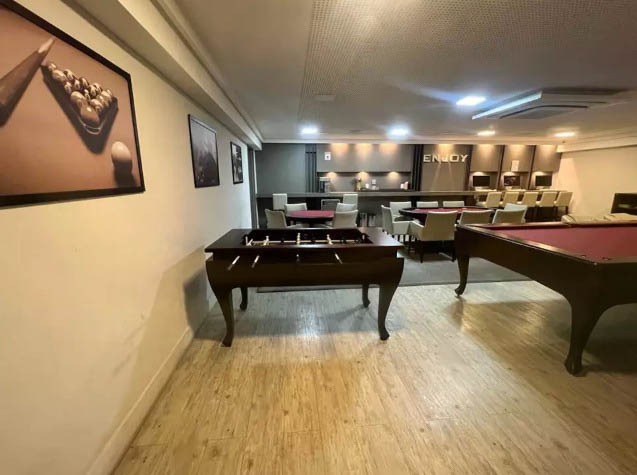 > Academia, home cinema, salão de festas, salão de jogos e playground;