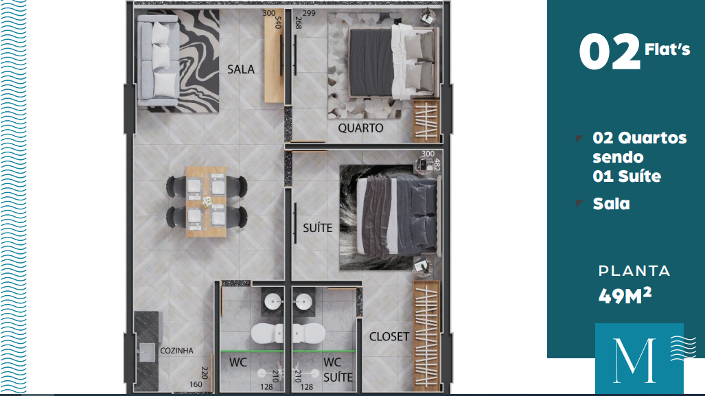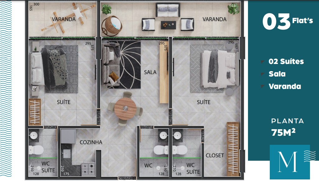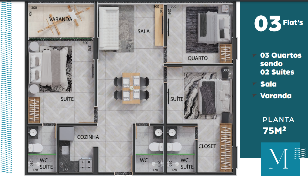 Havendo a possibilidade de juntar duas ou três unidades de flats fazendo um apartamento de dois ou três quartos com metragem de 50m² ou 75m².