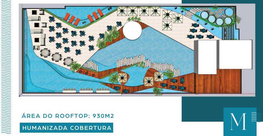 O empreendimento tem uma vasta área de lazer com acqua park no rooftop com bar molhado, lavanderia compartilhada, auto market, sports bar, conveniência, restaurante, espaço kids, co-working, pet wash, salão de beleza, academia, Spa, elevador e muito mais para garantir a sua diversão.