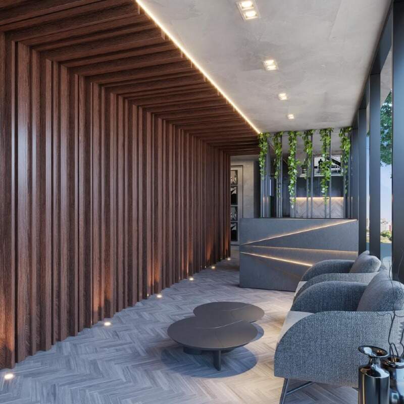 No Pavimento Térreo possui opções de Flats com metragens entre 18m² e 20m², todos eles com o diferencial de possuírem áreas externas privativas que medem entre 12m² a 18m² , a depender da unidade escolhida.