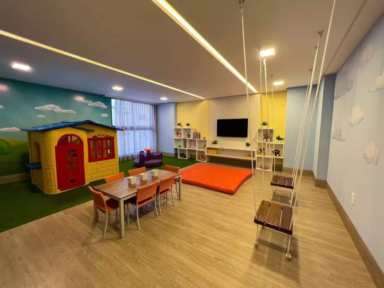 > Academia, lavanderia, salão de jogos, playground e salão de festa;