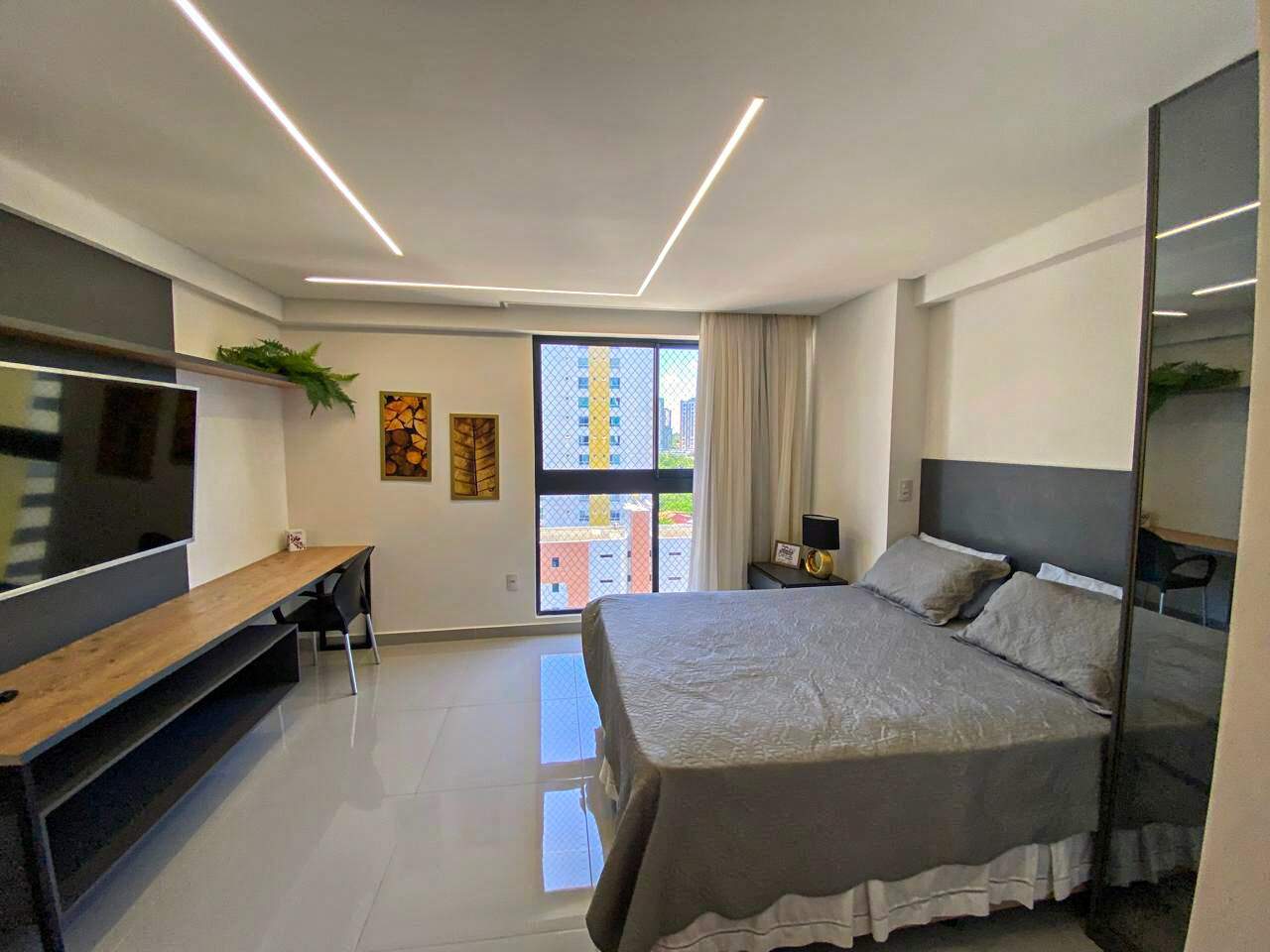 Esse Studio foi pensado para quem busca praticidade sem abdicar do espaço. Conta com um quarto amplo e bem iluminado, cozinha de apoio funcional e banheiro social moderno, ideal para quem valoriza praticidade no dia a dia.