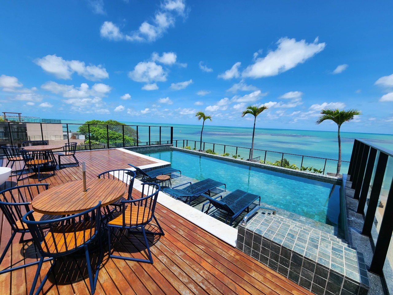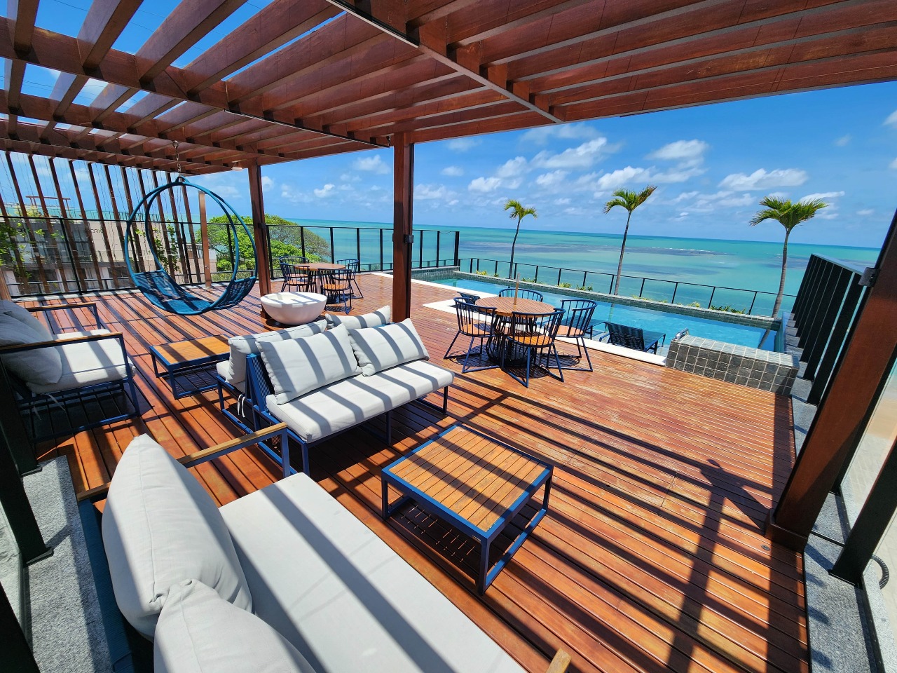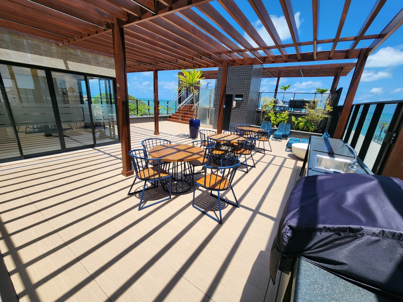 Studio pé na areia, com quarto amplo e bem iluminado, cozinha de apoio funcional e banheiro social. O grande destaque é a área privativa exclusiva, ideal para criar um espaço de lazer, relaxamento ou convivência, unindo conforto, praticidade e uma localização incomparável.